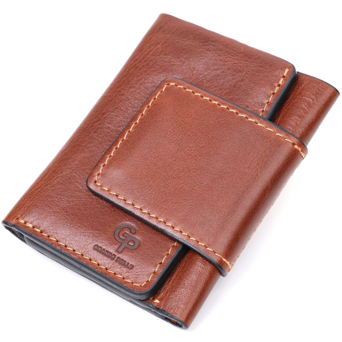 Небольшой кошелек из натуральной кожи в три добавления Grande Pelle 11662 коричневый