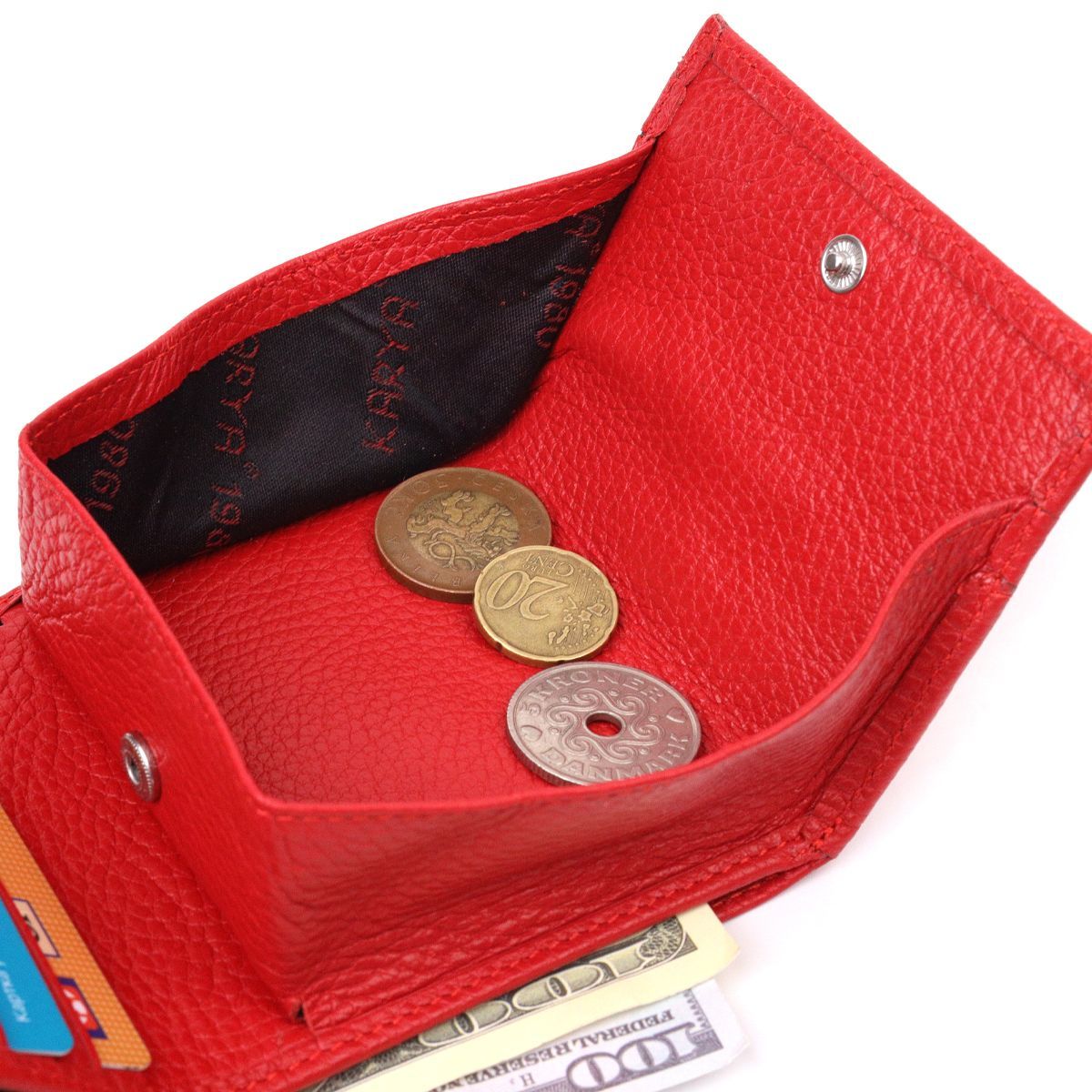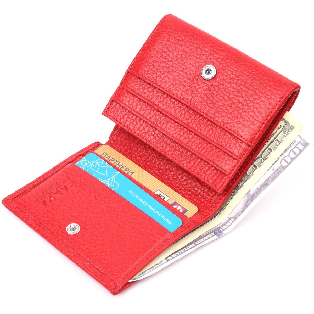 Небольшой женский кошелек с монетницей из натуральной кожи KARYA 21380 красный