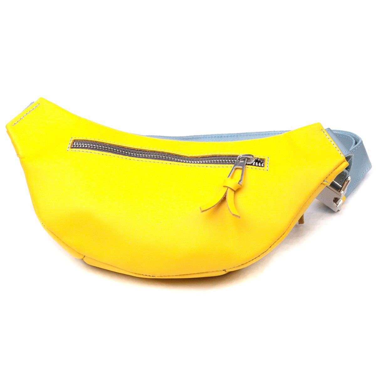 Патриотическая кожаная сумка-бананка комби двух цветов Сердце Grande Pelle 16760 желто-голубая