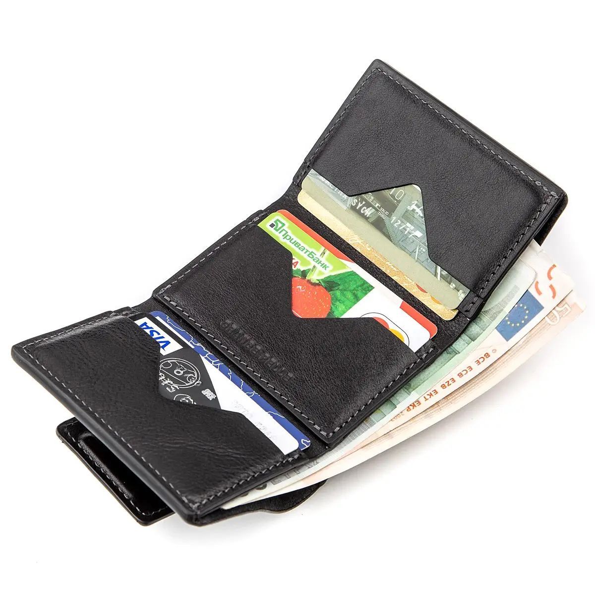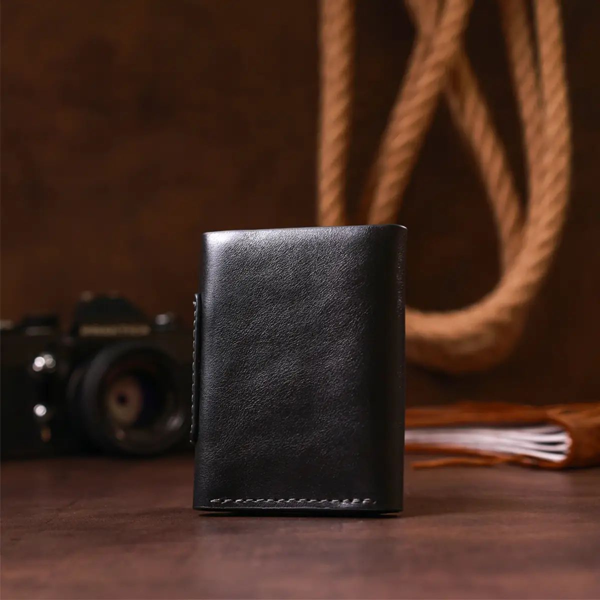 Классическое и универсальное портмоне из натуральной итальянской кожи высочайшего качества. Очень компактный размер. Аксессуар смотрится очень стильно и дорого. Будет идеальным подарком для близкого человека. Кошелек упакован в фирменную коробочку.