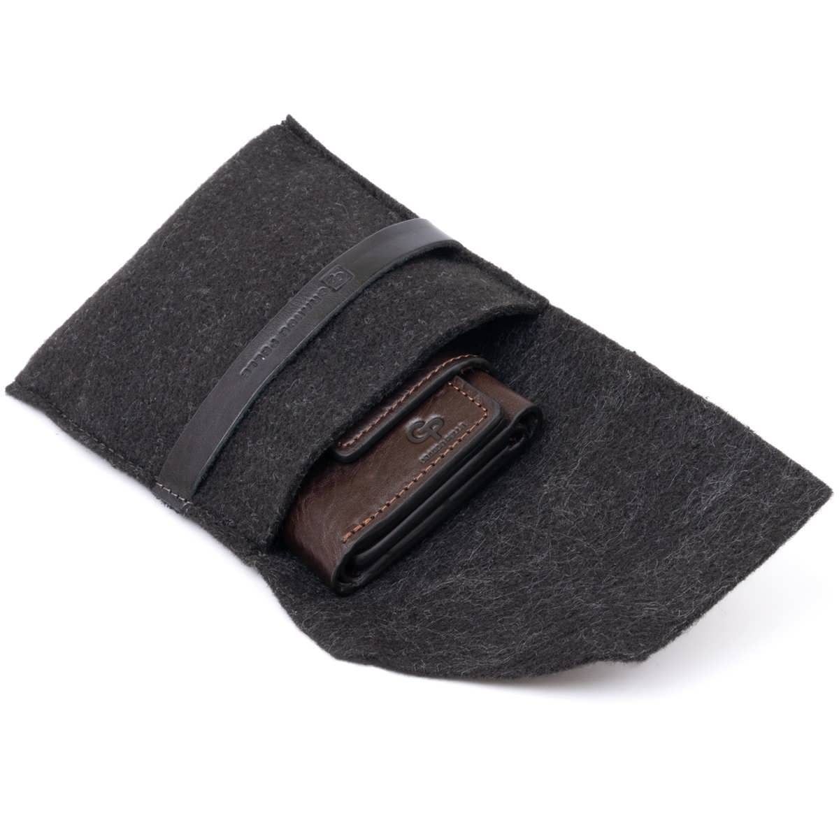 Вертикальный кошелек в гладкой коже с минимальным дизайном. Внутри – несколько ячеек для карт и одно отделение для купюр. Идеальный вариант для любого мужчины, не любящего объемных и больших аксессуаров. Несмотря на свой небольшой размер портмоне, очень дорого и солидно смотрится. Кожа хорошо блестит на солнце. Изделие сделано с учетом всех модных тенденций и пожеланий клиентов. Самая популярная модель из новой коллекции. В комплекте фирменный войлочный чехол. Портмоне – идеальный подарок для ваших близких.