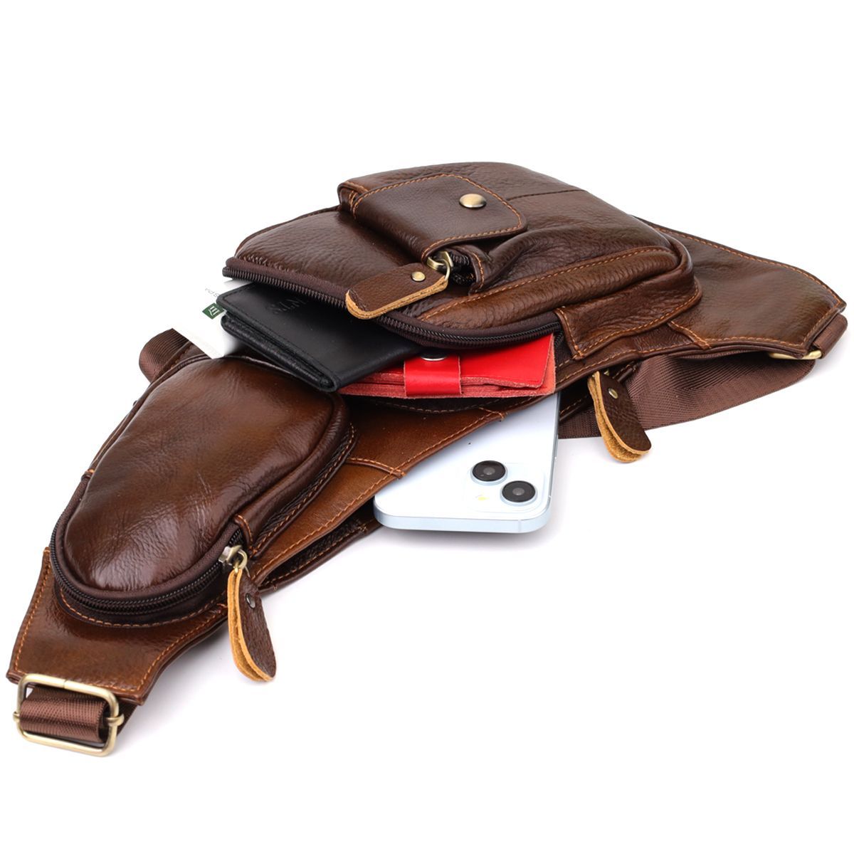 Практична чоловіча сумка з великою кількістю кишень із натуральної шкіри Vintage 22962 коричнева