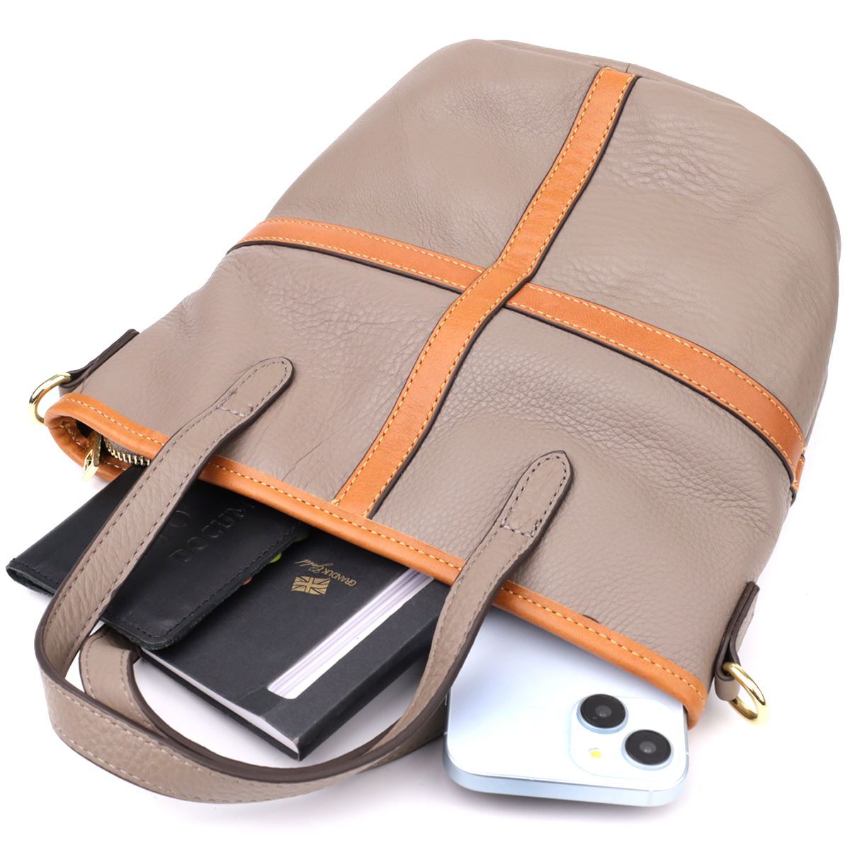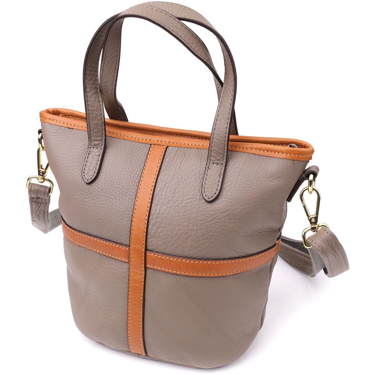 Сіра шкіряна сумка у вигляді трапеції - ідеальний вибір для жінок, які цінують стриманий шик, якість та продуманий дизайн.