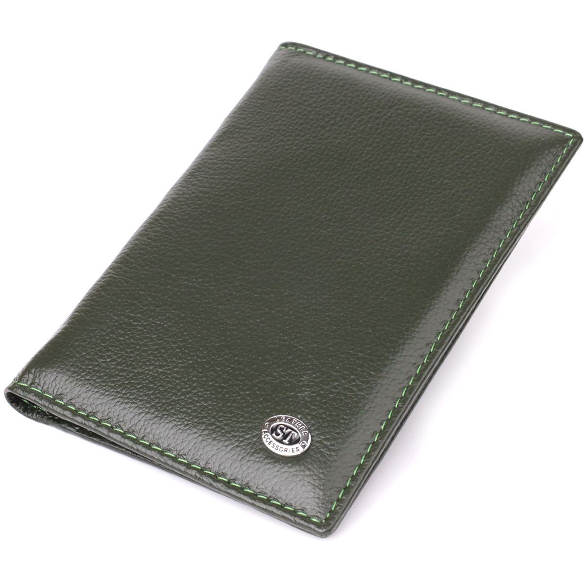 Практична обкладинка на паспорт універсального формату із натуральної шкіри ST Leather 23081 зелена