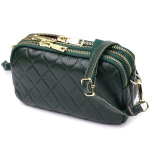 Практична шкіряна сумка на три відділення для жінок Vintage 22893 зелена