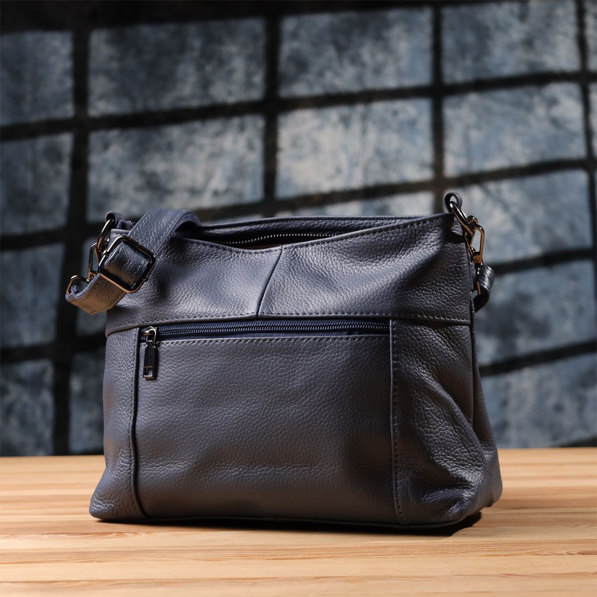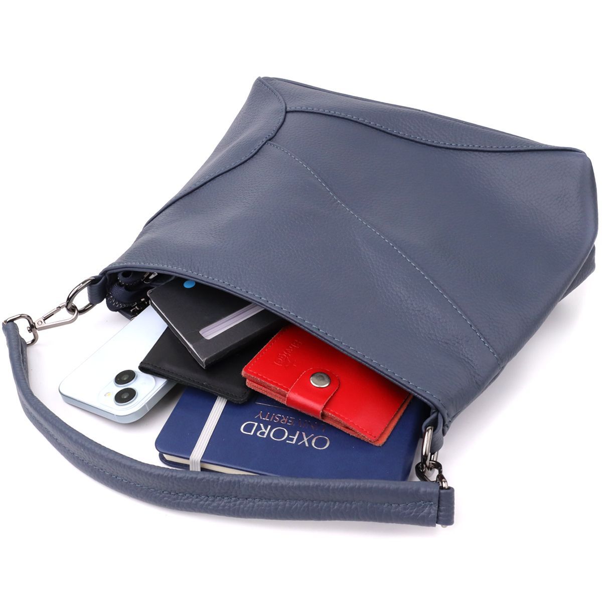 Практична жіноча сумка на два відділення з натуральної шкіри Vintage 23016 синя