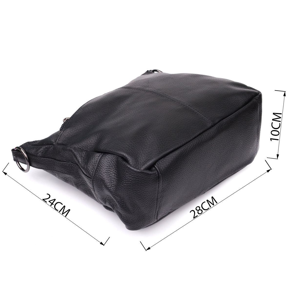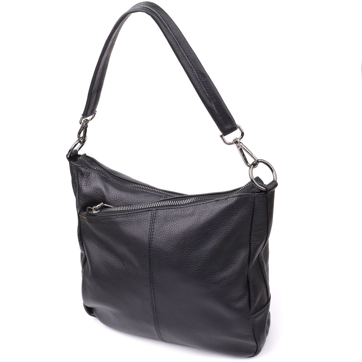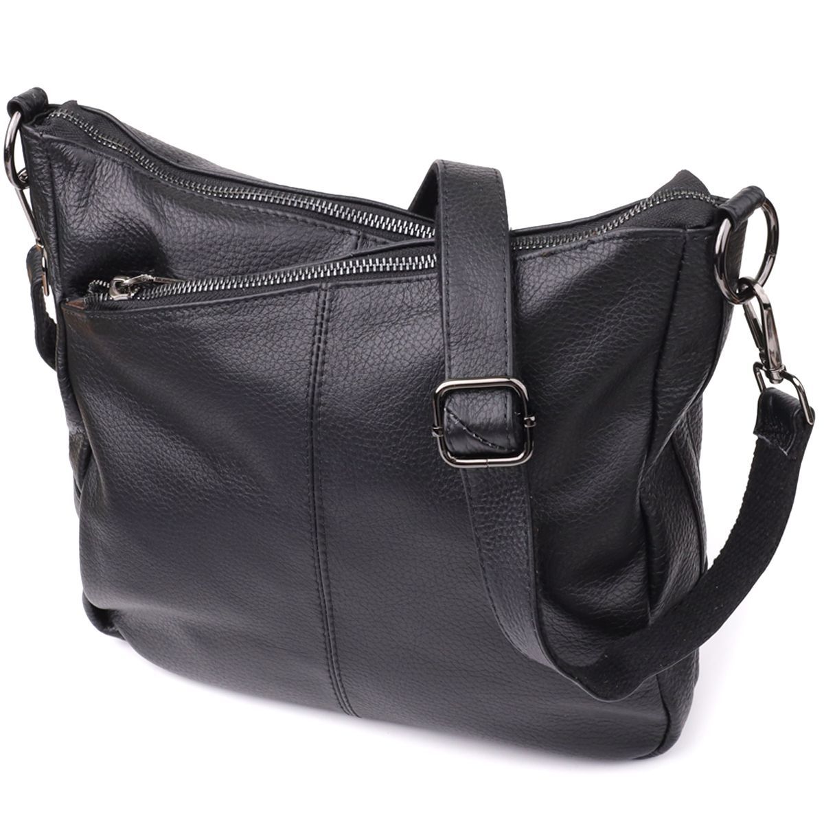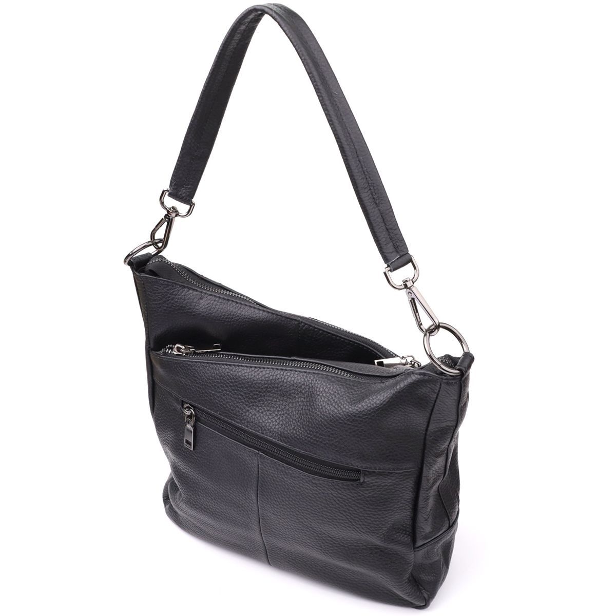 Стильна та практична сумка з натуральної шкіри у класичному чорному кольорі – ідеальний вибір для тих, хто цінує зручність, функціональність та елегантність. Ця модель продумана до дрібниць, щоби відповідати динамічному ритму життя сучасної жінки.