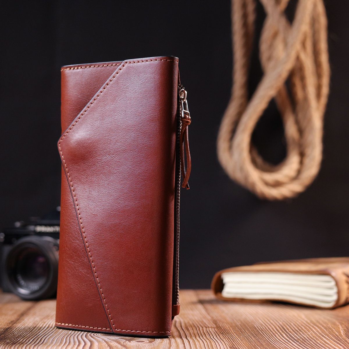 Красивый и многофункциональный портмоне в глянцевой дорогой коже итальянского производства. Изделие имеет продуманный до мелочей дизайн и качественную фурнитуру, очень практично. В портмоне поместятся купюры в развернутом виде. Дополнен аксессуар также ячейками для кредиток, в аксессуаре собран весь необходимый функционал для современного клиента. Изделие удобно лежит в руке. Глянцевая кожа отлично и долго носится и не требует особого ухода. Прекрасный подарок для ваших близких.