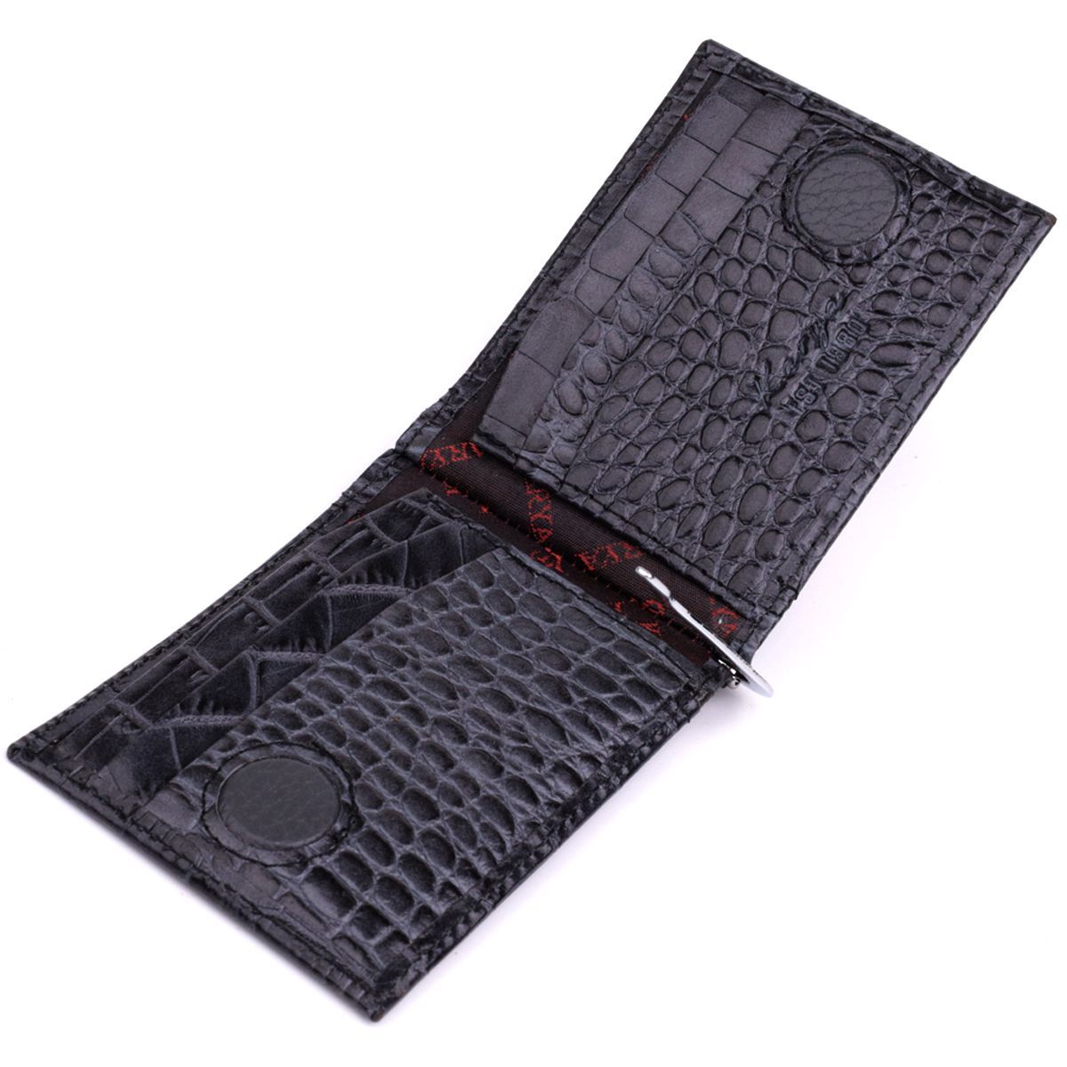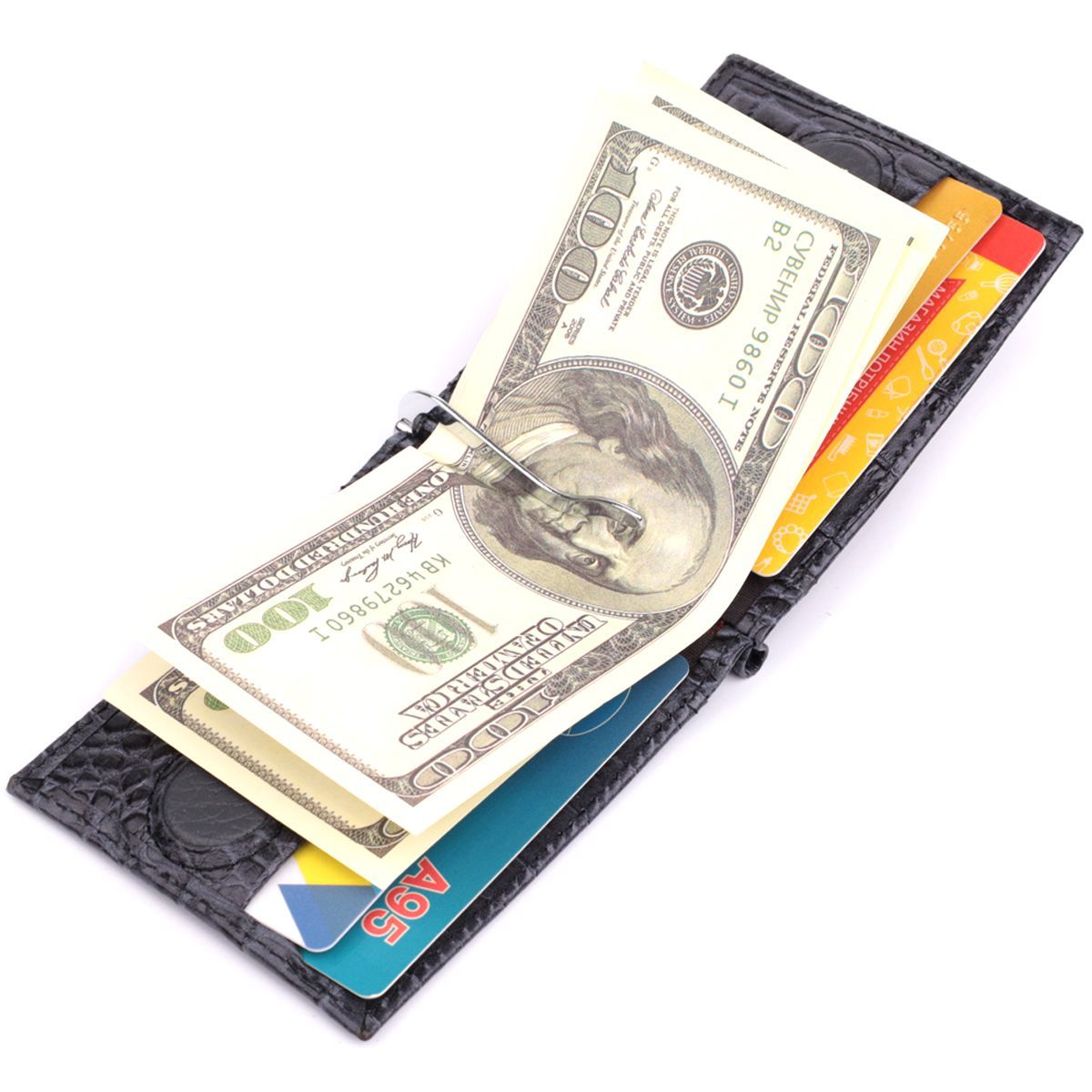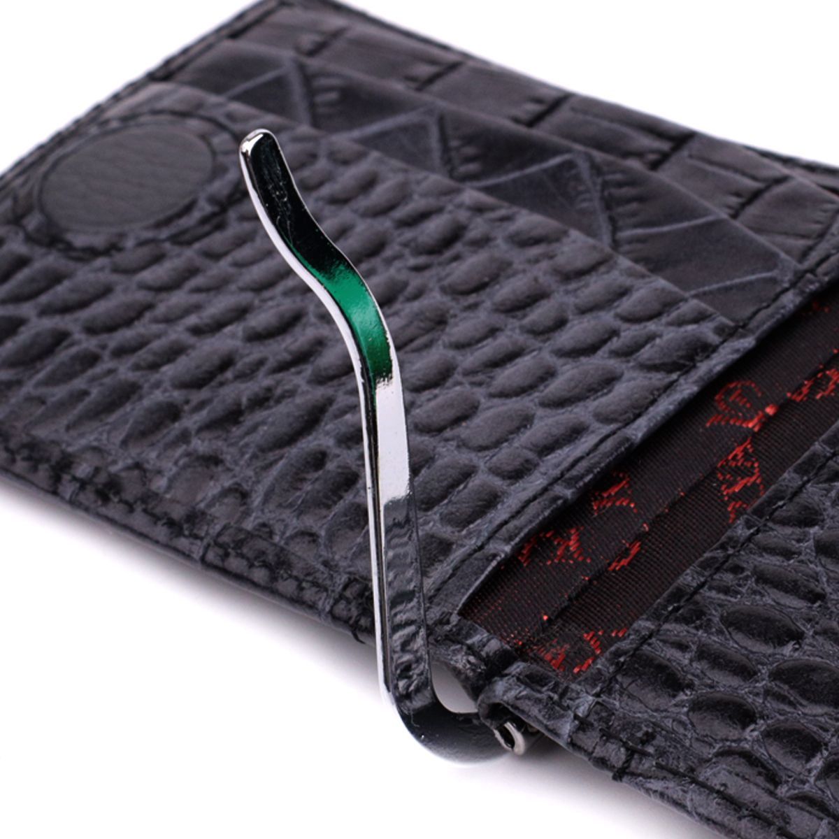 Стильний гаманець для купюр виконаний з фактурної натуральної шкіри з тисненням під крокодила. Аксесуар виконаний у стильному сірому кольорі. Купюри фіксуються металевим утримувачем. Користь затиску полягає в тому, що він набагато компактніший, ніж гаманець, легко поміщається в руку або кишеню. Аксесуар упакований у фірмову коробочку. Вироби з натуральної шкіри завжди будуть чудовим подарунком для близької людини.