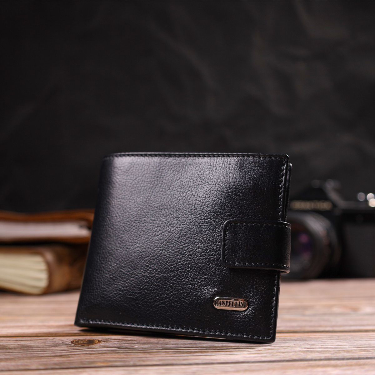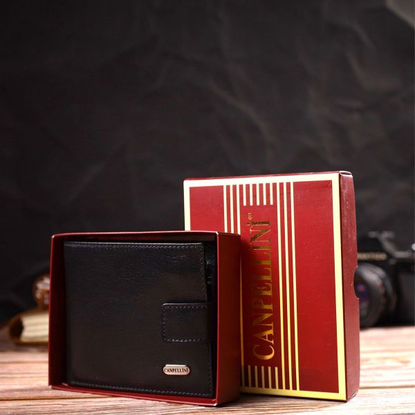 Практичный кошелек для мужчин горизонтального формата из натуральной гладкой кожи Canpellini 21772 черный
