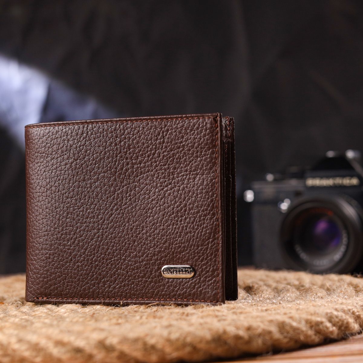 Практичный кошелек для мужчин в два сложения из натуральной кожи флотарий Canpellini 21586 коричневый