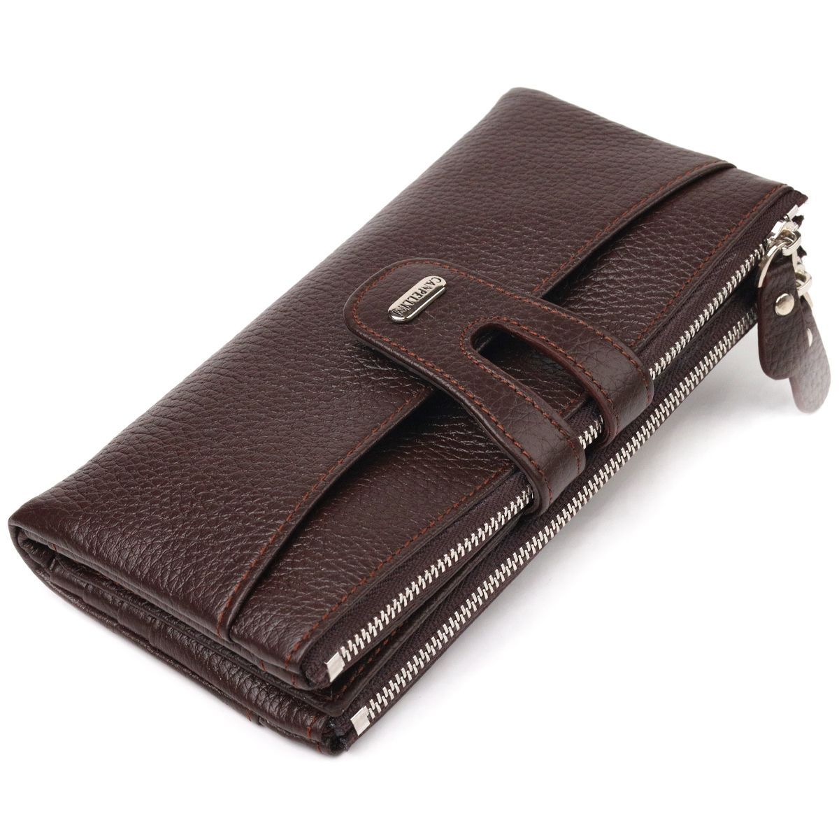 Практичный кошелек из натуральной зернистой кожи Canpellini 21632 коричневый
