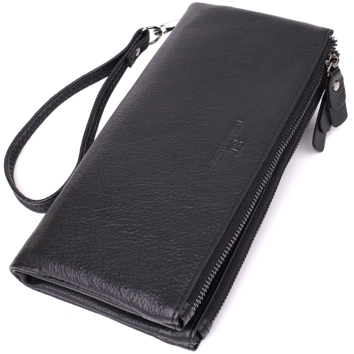 Універсальний гаманець-клатч, який відрізняється своєю місткістю. У цю модель легко поміститься ваш смартфон. Таким чином, модель здатна замінити вечірню сумочку. Носити клатч можна за допомогою шкіряного ремінця на зап'ястя. Дві місткі кишені допоможуть зручно розкласти вам гроші, також клатч має достатньо слотів для кредиток. Перевагою даного кольору є те, що він не прив'язує вас до певної палітри кольорів в гардеробі. Він підходить під усе. Сам клатч м'який і приємний на дотик. На лицьовій стороні по центру - тиснений логотип виробника, що є знаком якості та оригінальності виробу. Усередині клатч зроблений з натуральної шкіри та щільного текстилю. У комплекті йде фірмова коробка із логотипом бренду. Шкіряний клатч стане найкращим подарунком для близької людини.