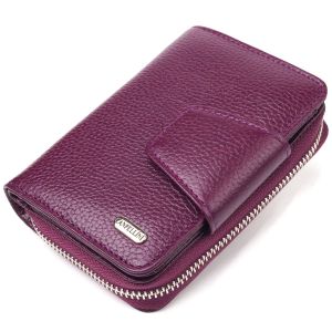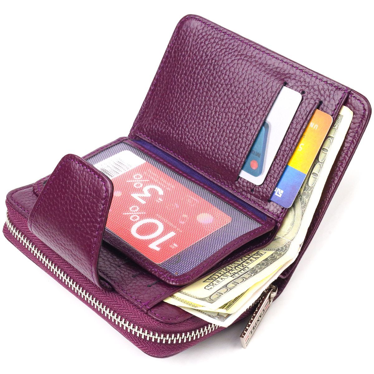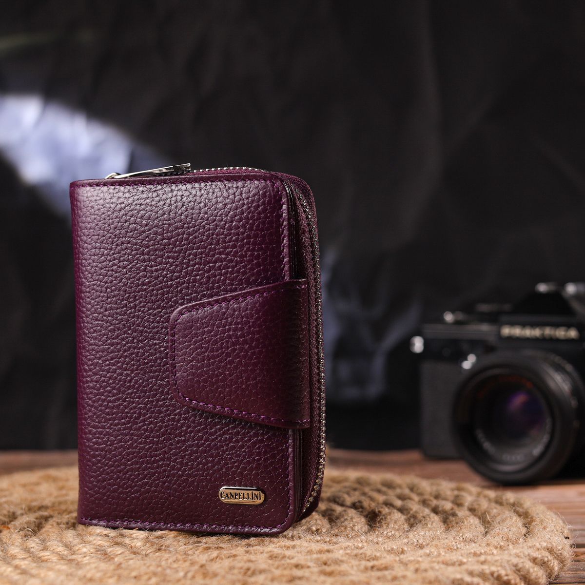 Практичный вертикальный портмоне для женщин с монетницей на молнии из натуральной кожи флотарий Canpellini 21601 фиолетовый