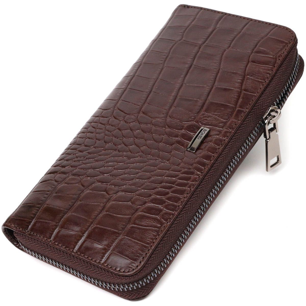Практичный женский кошелек из натуральной кожи с тиснением под крокодила BOND 21982 коричневый