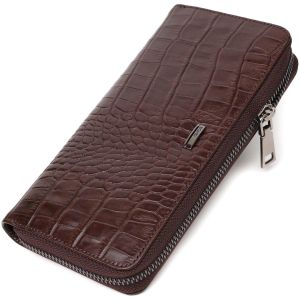 Красивый кошелек для современных женщин из натуральной кожи с тиснением под крокодила. Аксессуар состоит из трех отделений для купюр, шести ячеек для пластиковых карточек, трех близлежащих карманов и монетницы. В изделии использована качественная фурнитура. Закрывается кошелек на молнию. Качественный и надежный кошелек – именно такой аксессуар должен быть у каждого уважающего себя человека.