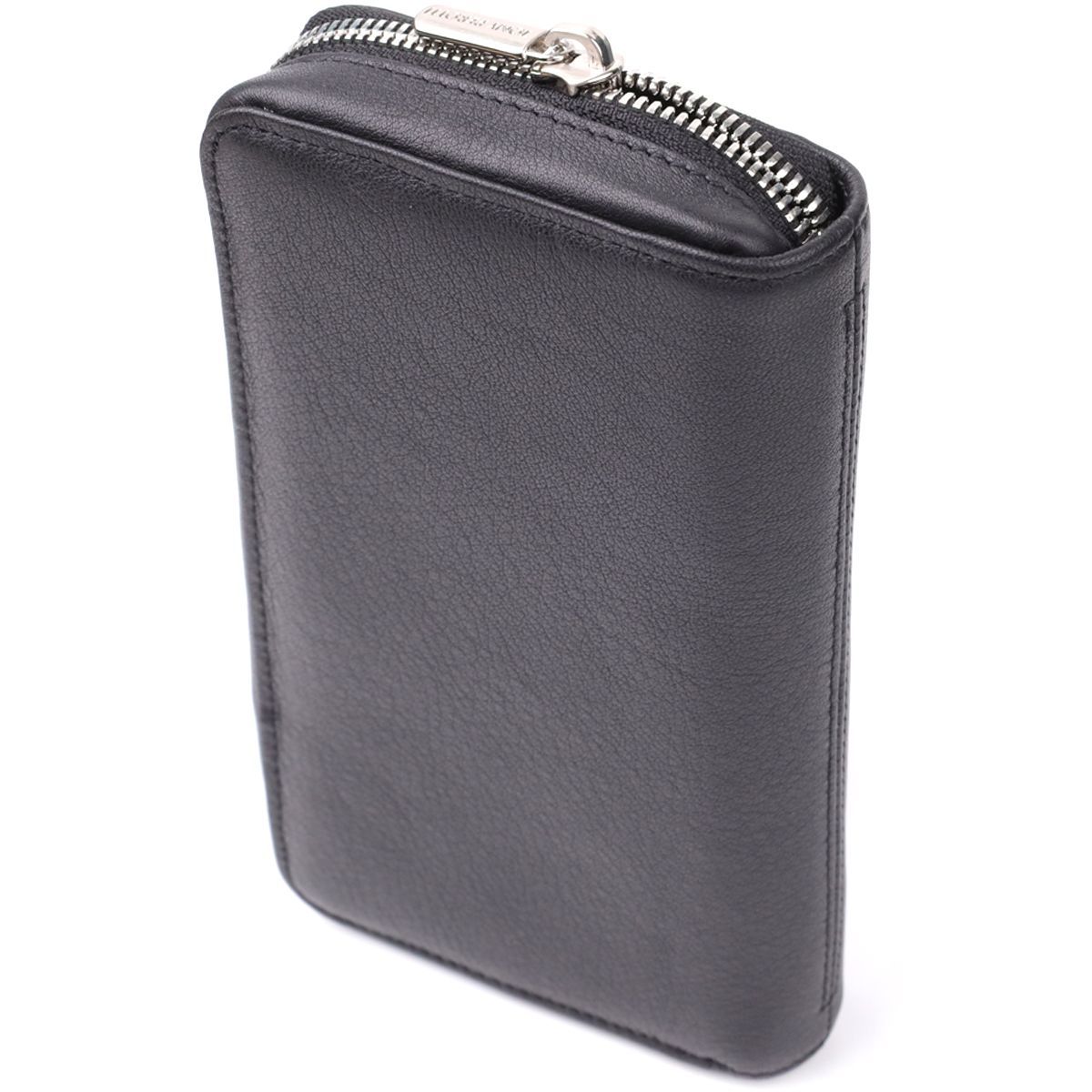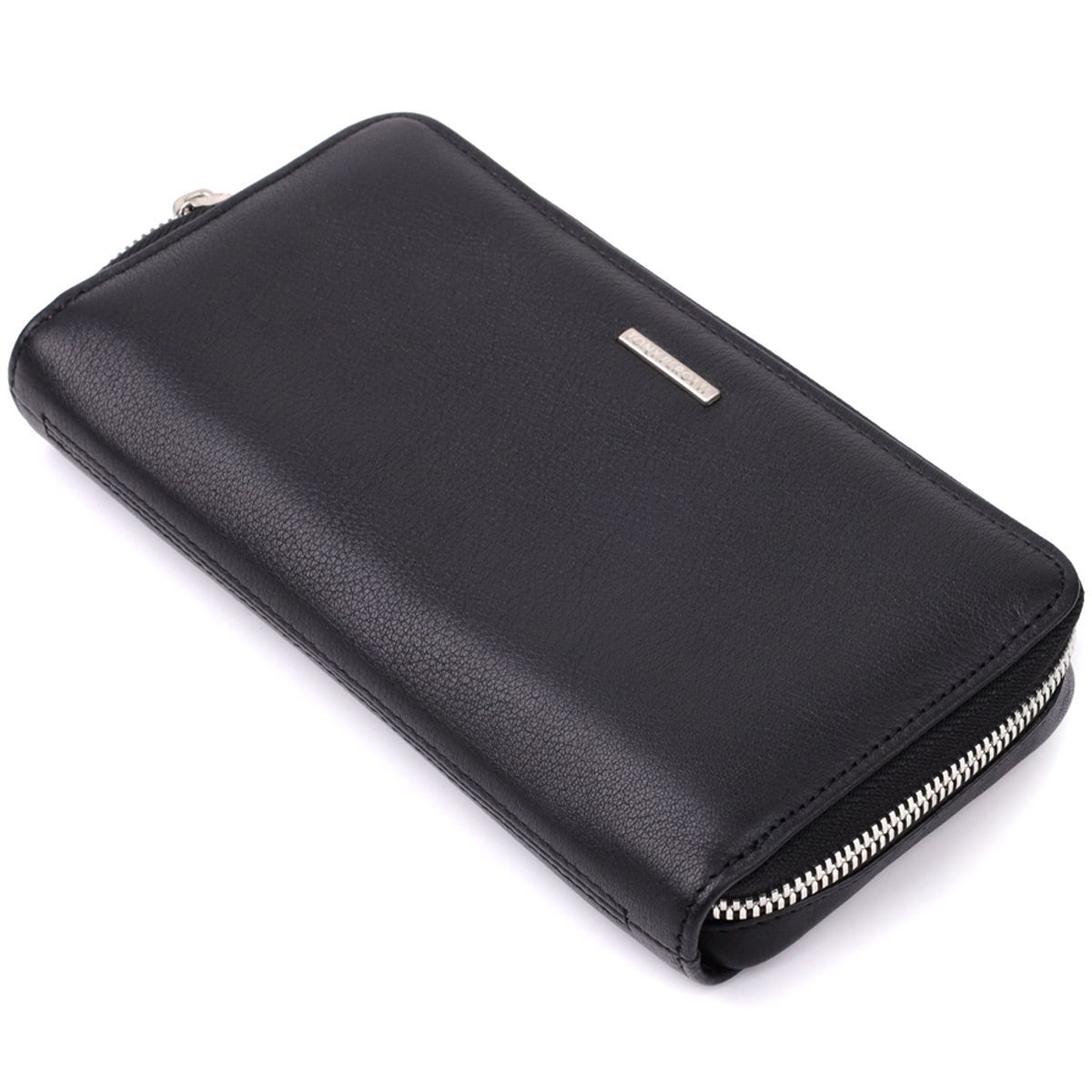 Жіночий шкіряний гаманець із натуральної зернистої шкіри чорного кольору – стильний та практичний аксесуар на кожен день. Місткі відділення для купюр, монетниця, кишені та слоти для карток забезпечують зручну організацію. Лаконічний дизайн робить модель універсальною, а якісні матеріали гарантують довговічність та елегантний зовнішній вигляд.