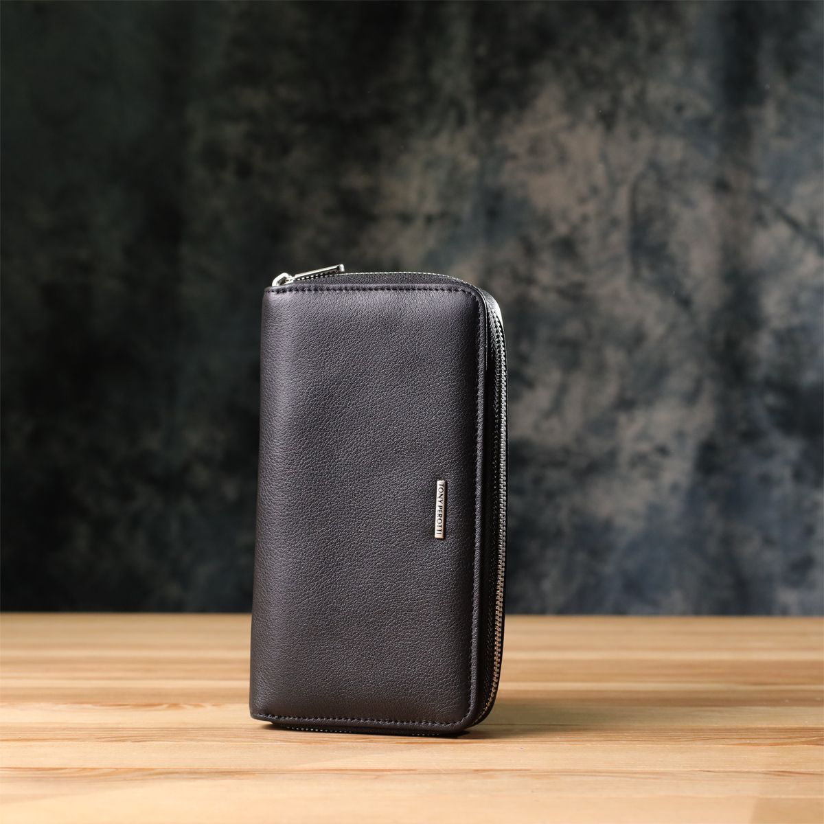 Практичний жіночий гаманець на одне відділення із зернистої натуральної шкіри Tony Perotti 20863_1 (3622 nero) чорний