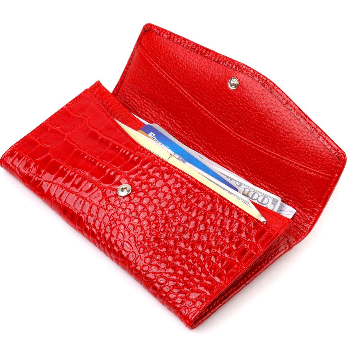 Привлекательное женское портмоне из натуральной кожи с тиснением под змею Canpellini 21699 красный