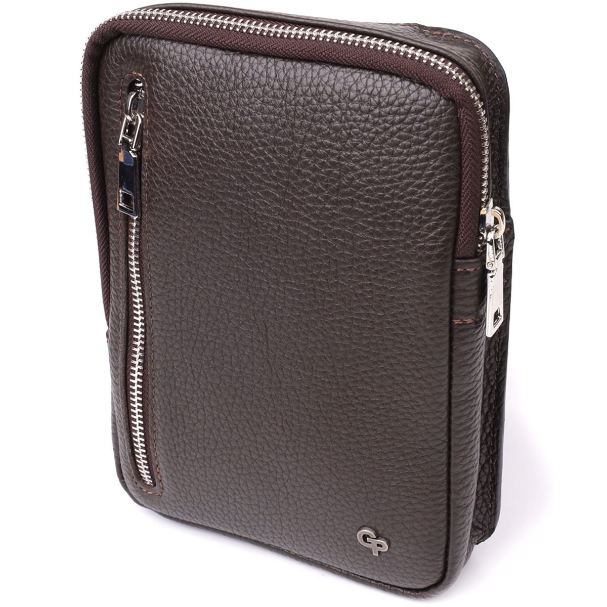 Прямокутна сумка бананка із зернистої натуральної шкіри GRANDE PELLE 22878 коричнева