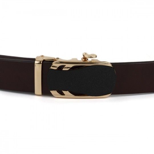 Ремень мужской с золотистой пряжкой автомат 20323 Vintage коричневый