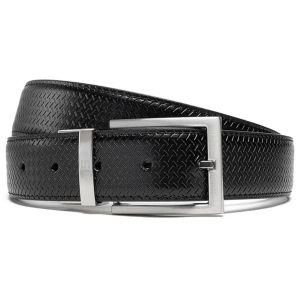 Ремінь виготовлений із натуральної шкіри з оригінальним тисненням по всій поверхні у вигляді зигзагоподібних рисочок. Така текстура додає ременю індивідуального характеру. Класична металева пряжка з обертальним механізмом та надійні металеві петлі підкреслюють загальну естетику і забезпечують комфортне використання.