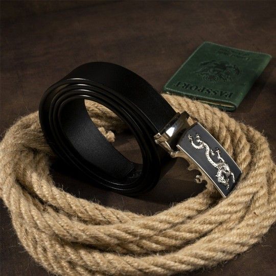 Очень стильный мужской ремень, который однозначно выделит вас из толпы. Ремень имеет оригинальную пряжку с эскизом дракона серебристого цвета на черной заливке. Сама пряжка выполнена из крепкого сплава. Аксессуар изготовлен из цельного полотна натуральной кожи, что обеспечивает ему более длительный срок службы. Качество-фабричный Китай. Изделие ничем не уступает дорогим именитым брендам. При этом покупая ремень Vintage вы существенно сэкономите ваш бюджет. Ремень отлично подойдет для стильных мужчин с чувством вкуса и для тех, кто следит за модой. Изделие будет хорошо переливаться на солнце. Мы уверены, что вы оцените этот аксессуар. Рекомендуем ремень, если вы находитесь в поиске подарка для мужчины.