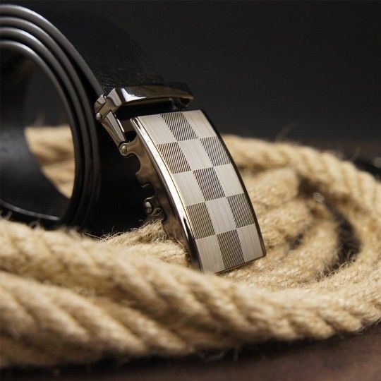 Стильный мужской ремень из натуральной кожи высочайшего качества. Выполнен аксессуар из цельного полотна. Дизайн ремня продуман до мелочей и отвечает всем модным тенденциям. Дополнен ремень оригинальной пряжкой из прочного сплава серебристого цвета и тиснением в виде шахматной доски. Автоматический ремешок очень практичен. Производство-фабричный Китай. Кожаный ремень – лучший выбор для подарка близкому человеку.