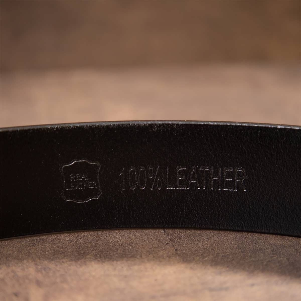 Кожаный ремень – must have для любого мужчины. Ремень выполнен из плотной натуральной кожи высокого качества. Дополнен ремень классической затемненной пряжкой. Классический черный цвет подойдет под любую обувь и аксессуары. Модель очень универсальна. Пряжка ремешка выполнена из крепкого металла. Дизайн ремня продуман с учетом всех модных тенденций и новинок этого сезона. Классический ремень в черном цвете всегда останется в тренде. Рекомендуем вам кожаный ремень как для себя, так и в качестве подарка близкому мужчине.