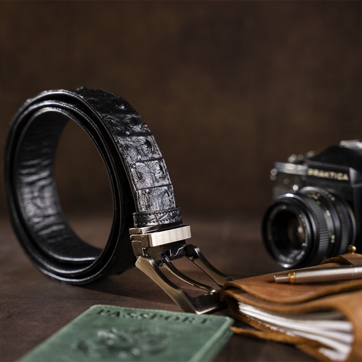 Ремінь класика з натуральної шкіри крокодила чорний CROCODILE LEATHER 18018
