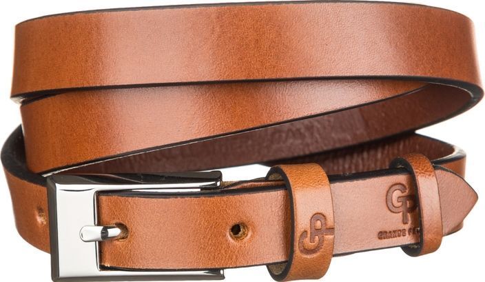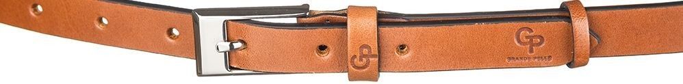 Узкий женский ремень из высококачественной итальянской кожи составит отличный ансамбль как с брюками, так и с платьем, блузкой или туникой. Пряжка выполнена из качественной фурнитуры, очень аккуратна и стильна. Торцы изделия украшены черным цветом. Цвет пряжки: серебро. Тиснение логотипа бренда добавляет изделию стиля, а также является залогом качества и оригинальности продукции.
