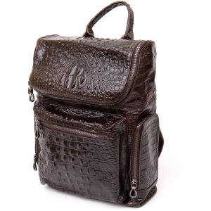 Місткий рюкзак із щільної шкіри, яка тримає форму. Аксесуар виконаний у коричневому кольорі та доповнений якісною фурнітурою сріблястого кольору. Виріб під рептилію. Рюкзак дуже функціональний та практичний. Підійде дана модель як для подорожей, так і щодня і як рюкзак для ноутбука. Виглядає дуже солідно та дорого. З таким рюкзаком буде зручно і ваші руки залишаться вільними. На задньому боці ущільнена спинка сіткою для вашого комфорту. Рекомендуємо рюкзак для покупки як для себе, так і на подарунок.