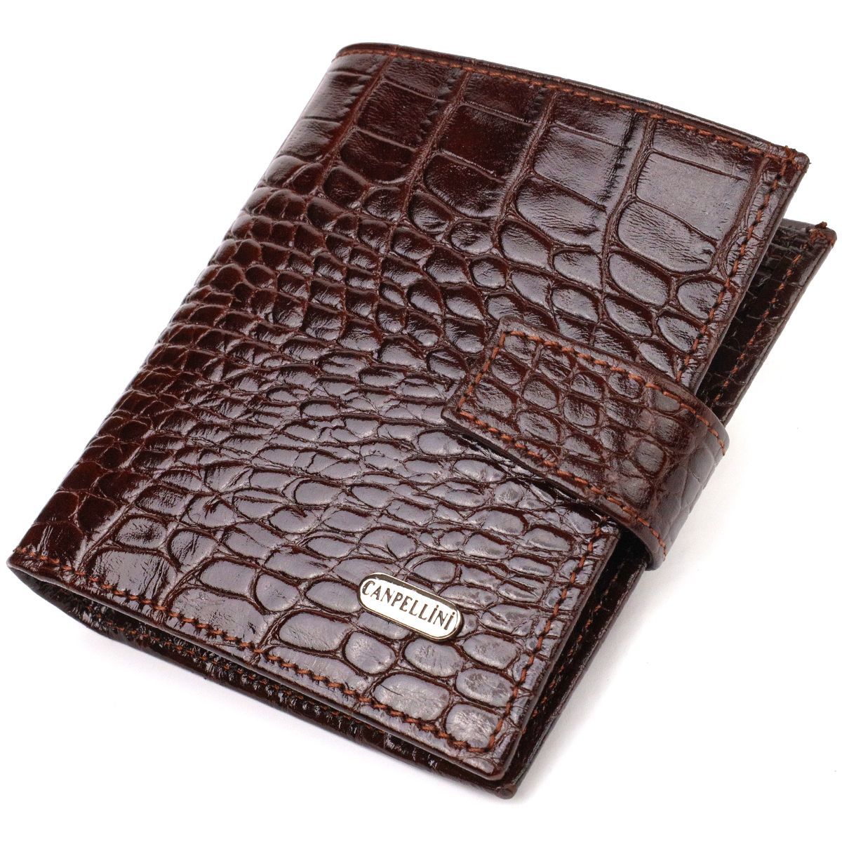 Шикарный мужской кошелек из натуральной кожи с тиснением под крокодила Canpellini 21729 коричневый