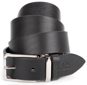 Классический ремень для брюк, который благодаря универсальному черному цвету будет отлично сочетаться с одеждой в классическом стиле любого оттенка. Ремень выполнен из кожи высокого качества и лишен лишних дизайнерских деталей – холст и шлевку украшает небольшое стильное тиснение логотипа бренда-производителя.