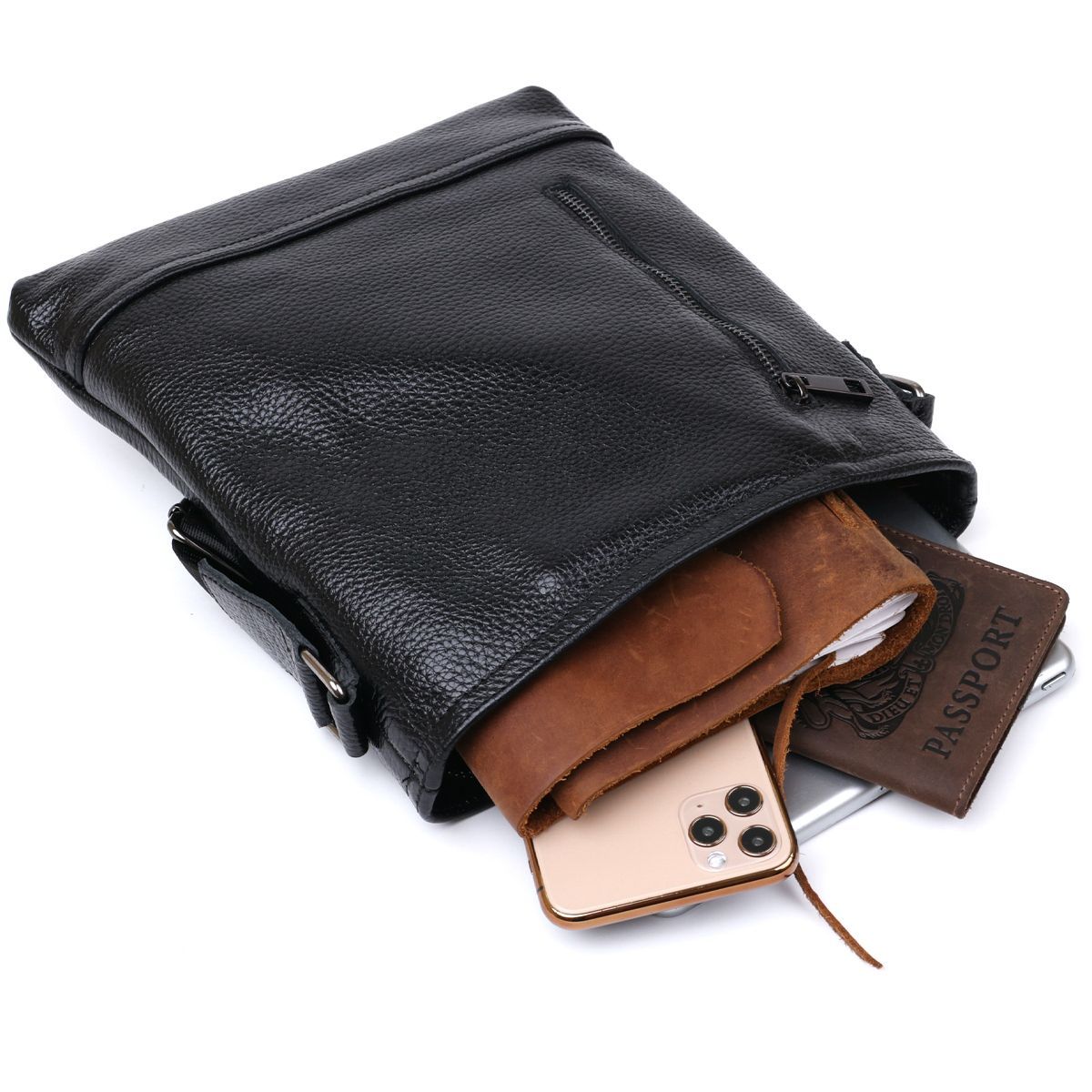 Кожаная стильная мужская сумка через плечо SHVIGEL 11604 черный