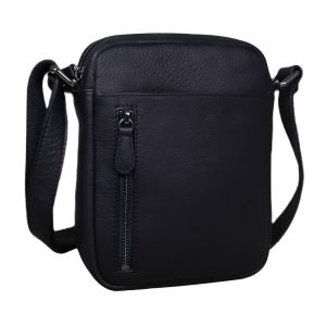 Чоловіча шкіряна сумка Tavinchi R-3169A пошита з натуральної шкіри зернистої фактури. Особливості: розміри сумки становлять 16 x 20 x 5 см. Месенджер має одне відділення яке закривається на блискавку, всередині є кишеня на змійці. З лицьового боку розташована горизонтальна кишеня і вертикальна на блискавці. Із заднього боку горизонтальна кишеня на блискавці. Плечовий ремінь на текстильній основі, регулюється за довжиною. Підкладка: текстиль. Колір: чорний. Колір фурнітури: темне срібло.
