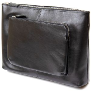 Отличная сумка для ноутбука из натуральной кожи высокого качества. Фактура – глянцево гладкая. Фурнитура в серебряном цвете, самая сумка черная. Внутри весьма емкое отделение, в которое поместятся бумаги формата А4, блокноты, ручки и прочая канцелярия. Отделение для ноутбука фиксируется хлястиком с липучкой. На внешней стороне также присутствует небольшой практический карман на молнии, применение которого всегда найдется. Упакованная сумка в фирменный чехол.