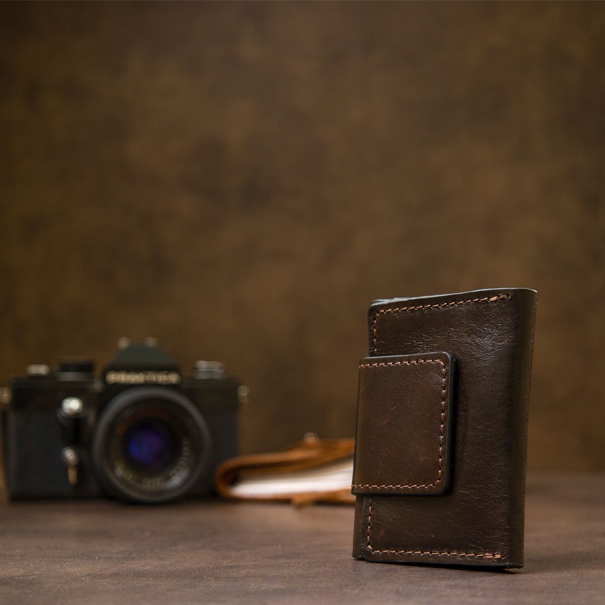 Компактная, но в то же время вместительная кожаная визитница для карточек от украинского производителя. Выполнена из высококачественной натуральной кожи в мягкой и приятной на ощупь фактуре. Закрывается аксессуар на хлястике со скрытым магнитом. Идеально подойдет на подарок родному человеку.