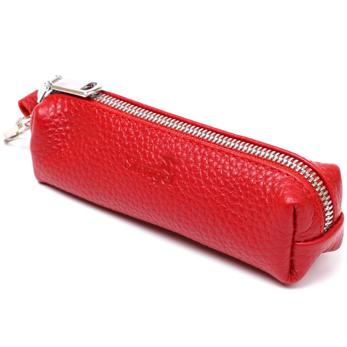 Красивая и практичная женская ключница в насыщенном красном цвете. Имеет зернистую фактуру, которая очень приятна на ощупь. Фурнитура изготовлена в цвете под серебро. Материал изготовления – натуральная кожа высокого качества и отличной устойчивости к износу. С таким аксессуаром ключи будут надежно спрятаны.