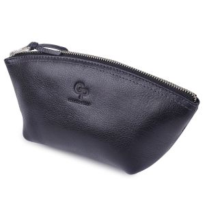 Красивая и стильная женская косметичка из натуральной крепкой кожи с отличными характеристиками. Имеет универсальный черный цвет и гладкую фактуру с легким блеском. Такая косметичка пригодится в пути для хранения ценных необъемных вещей. Упаковано изделие в фирменный чехол.