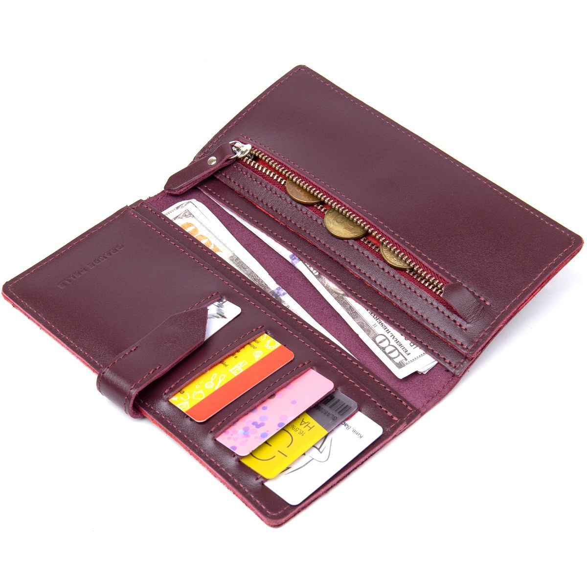 Кожаный глянцевый портмоне Grande Pelle 11467 бордовый