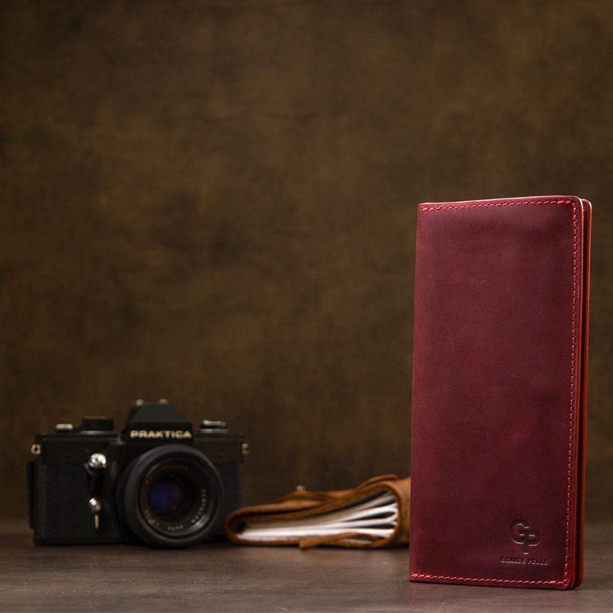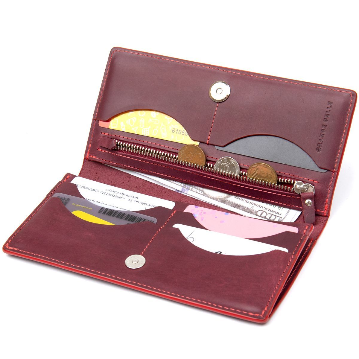 Кожаный винтажный портмоне Grande Pelle 11468 бордовый