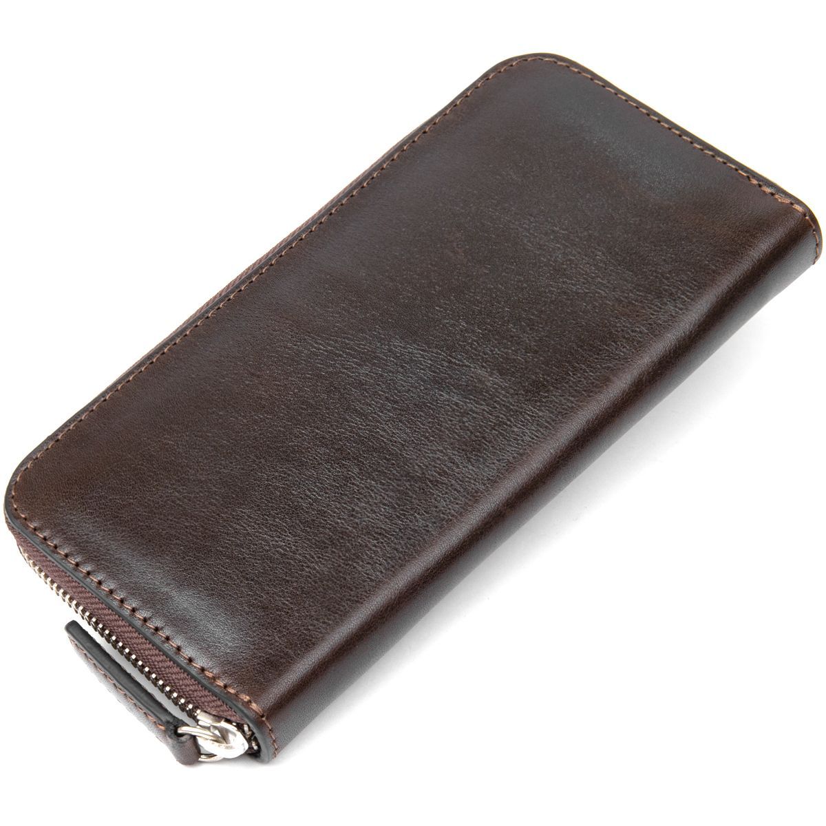 Кожаное женское глянцевое портмоне Grande Pelle 11466 коричневый