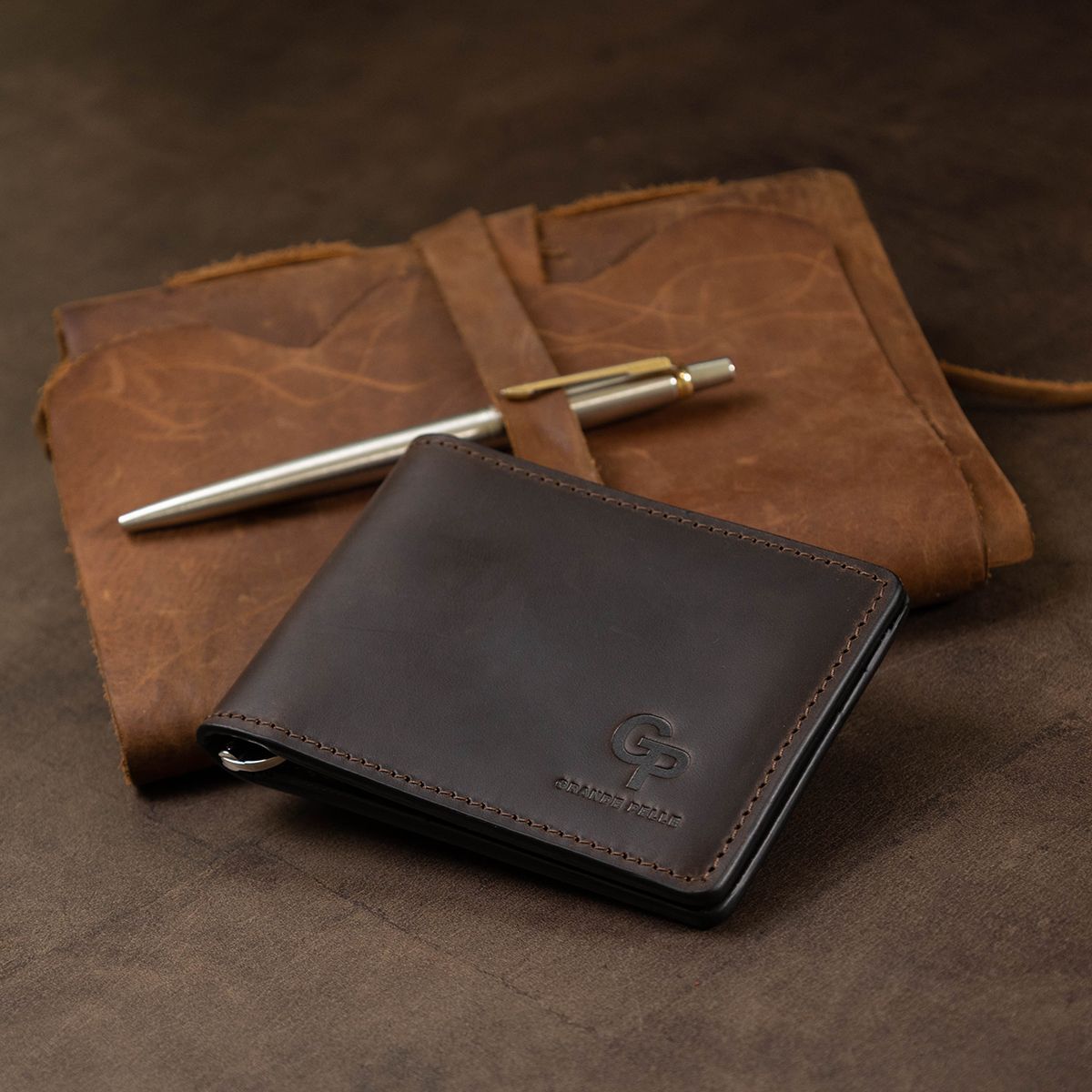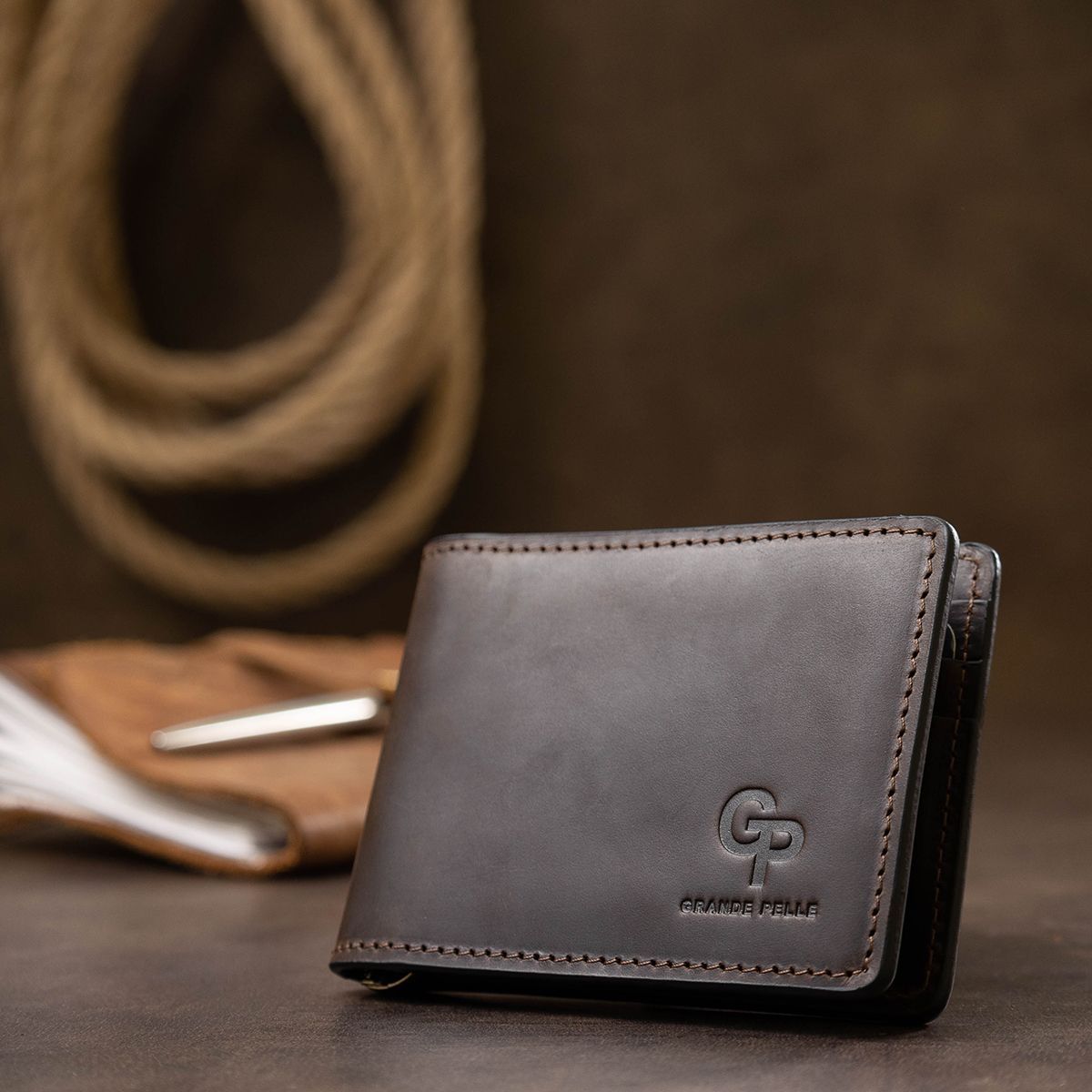 Кожаный мужской зажим для денег Grande Pelle 11543 коричневый