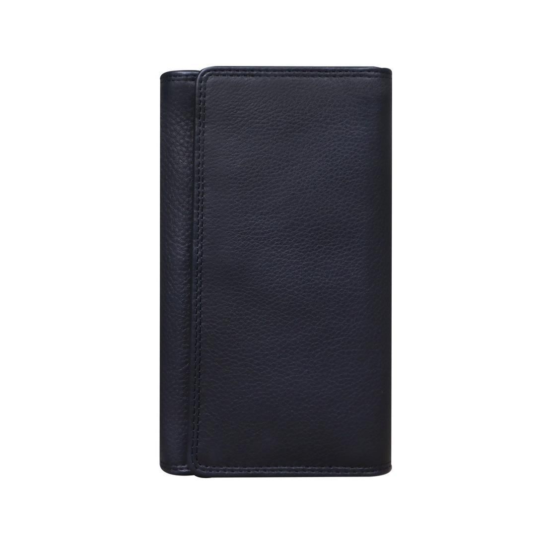Шкіряний чорний гаманець Tavinchi R-P-5190A пошитий з натуральної шкіри зернистої фактури. Особливості:розміри становлять 17 x 10 x 4 см. Гаманець має одне велике відділення яке закривається на кнопку. Всередині є кишеня на блискавці. Одне відділення призначене для грошей, інше має безліч слотів для банківських карт. Підкладка: текстиль/шкіра. Колір: чорний. Колір фурнітури: темне срібло.