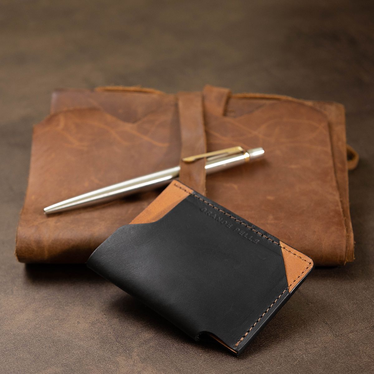 Оригинальный кожаный картхолдер из натуральной кожи от украинского производителя. Имеет хорошее сочетание черного и коричневого цвета. Хорошо поместиться в кошелек, карман или сумку любого размера. Упаковано изделие в плотный чехол.