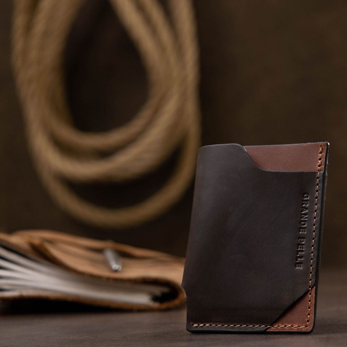 Кожаный необычный картхолдер Grande Pelle 11534 коричневый