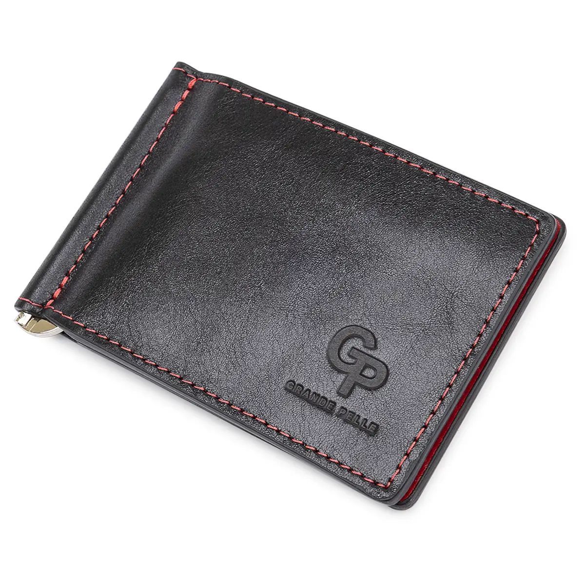 Кожаный стильный зажим для денег унисекс Grande Pelle 11541 черный