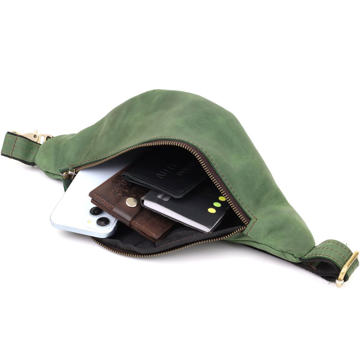 Стильна чоловіча бананка відмінної якості з натуральної шкіри вінтажної шкіри Shvigel 23142 зелена