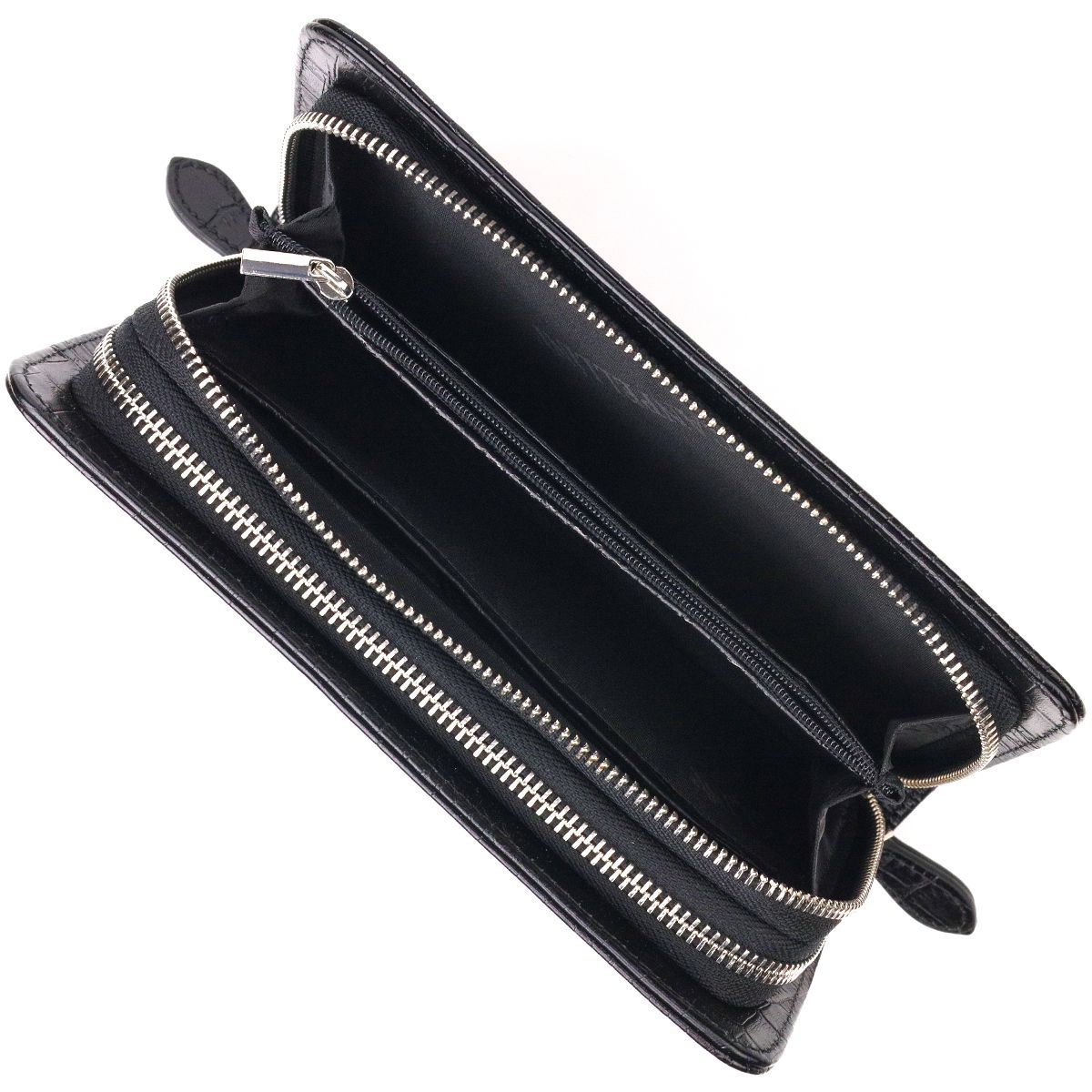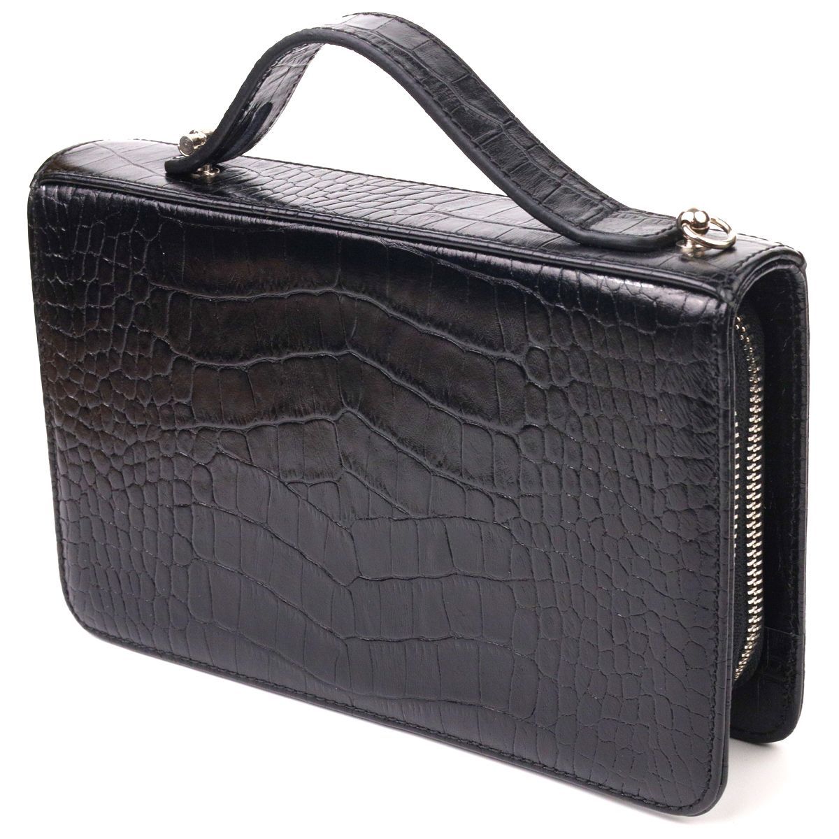 Стильная мужская барсетка на два отделения из натуральной фактурной кожи с тиснением под крокодила Canpellini 21570 черная